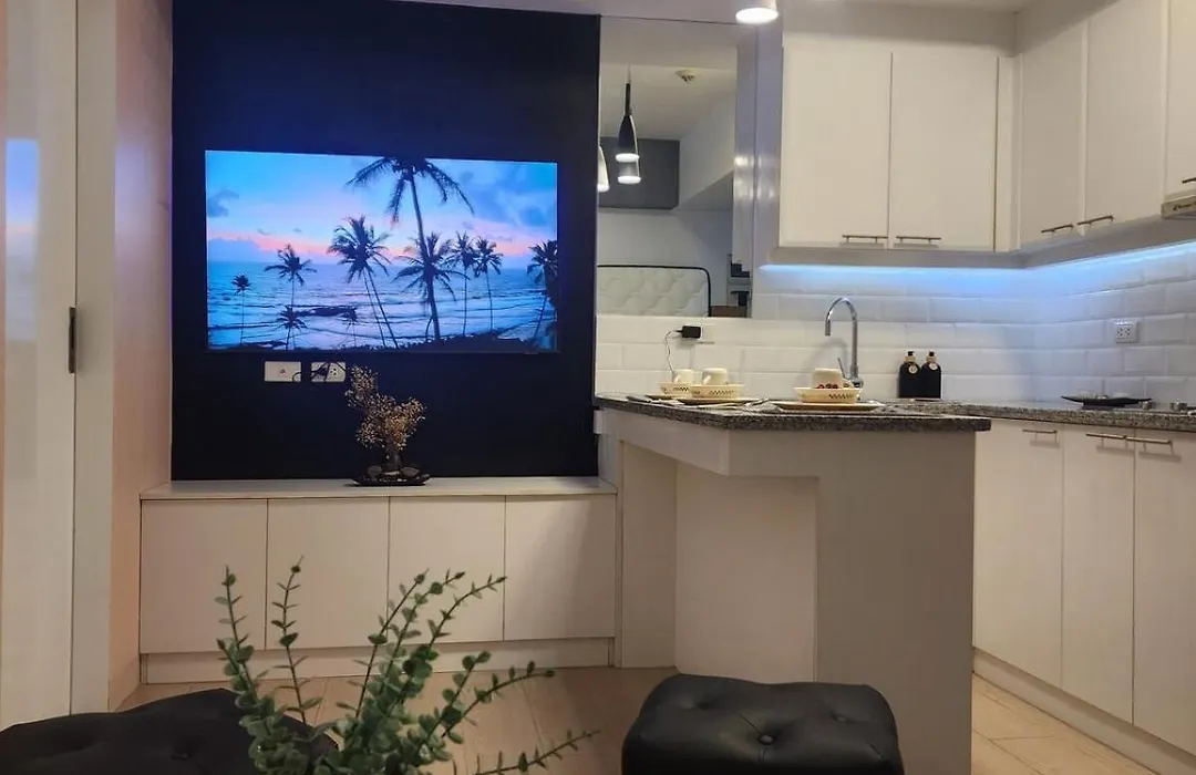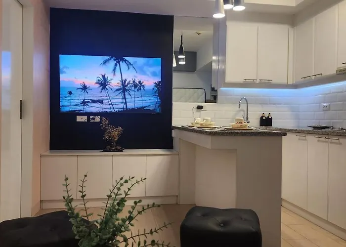60m²のModern Bright Cozy Stylish 1Br Venice Bgc Balcony マニラ市アパートはボニファシオ ハイ ストリートから歩いて25分に位置し、宿泊から4.8km離れたブエンディア鉄道駅へ行きやすいです。 アパートから500メートルくらい離れたベニス グランド キャナル モールを訪れたり、都市の景色を楽しんだり、プールでくつろいだりできます。